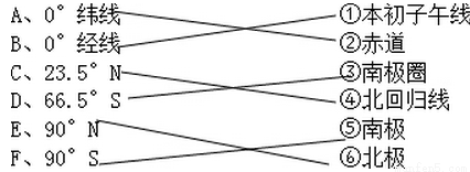 试题分析:地球仪上有无数条纬线,其中特别重要的纬线有赤道(0°)、南回归线(23.5°S)、北回归线(23.5°N)、南极圈(66.5°S)、北极圈(66.5°N),北极点是90°N,南极点是90°S,本初子午线是一条重要的经线,其度数是0°.