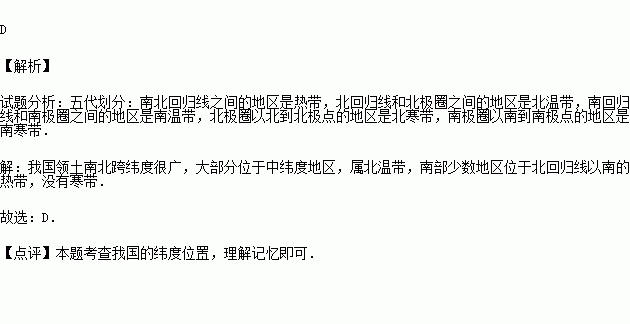 A.北寒带 B.北温带 C.南温带 D.热带
