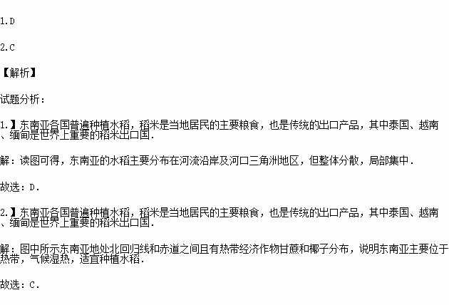 如图是中南半岛部分地区水稻分布图.据图回答问题.