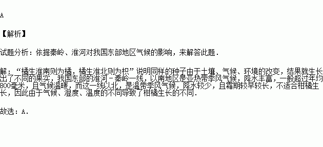 下列四幅图中“水稻一年可以种两熟甚至三熟”的区域是( )![]()