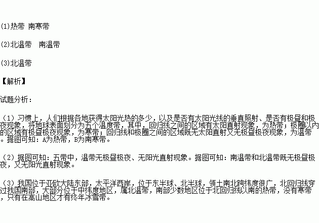 (2)五带中,无极昼极夜、无阳光直射现象的是______带和______带.