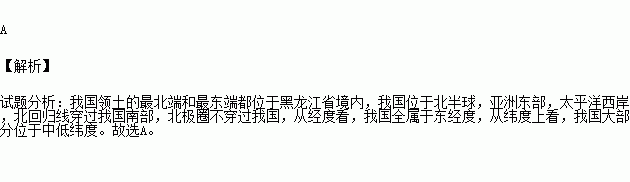 D.从经度来看,我国全属东经度,从纬度来看,我国大部分属低纬度
