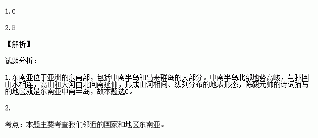 A.南亚印度半岛 B.东亚朝鲜半岛