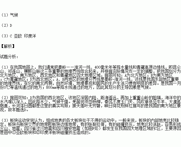 (3)四川省汶川地震和四川雅安地震(右图F处)都发生在我国四大地理区域的 区(填字母),主要