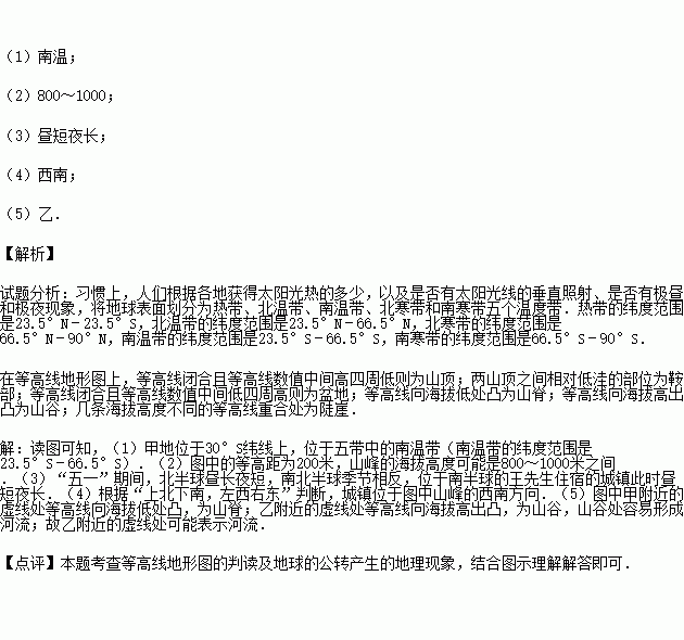 (1)甲位于五带中的 带.