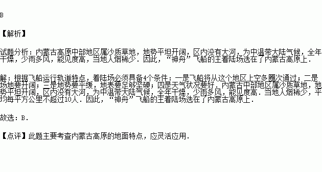 我国“神舟”号载人飞船返回着陆时,多选在周围居民少,开阔平坦的地区,下列地区最合适的是( )