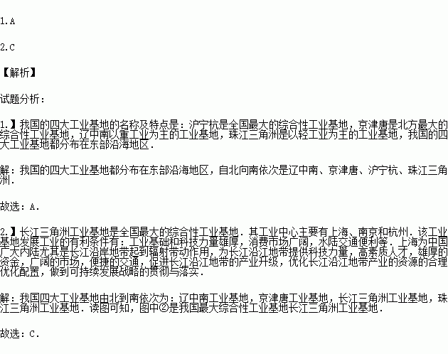 C.长江三角洲工业基地 D.珠江三角洲工业基地