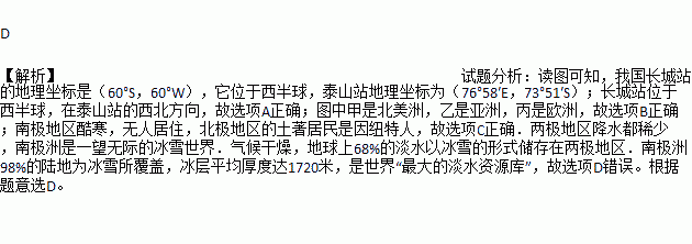 读两极地区示意图,判断下列说法不正确的是( )