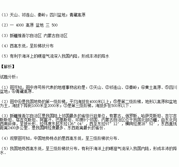 (5)我国地势西高东低,对我国气候的影响是: 。