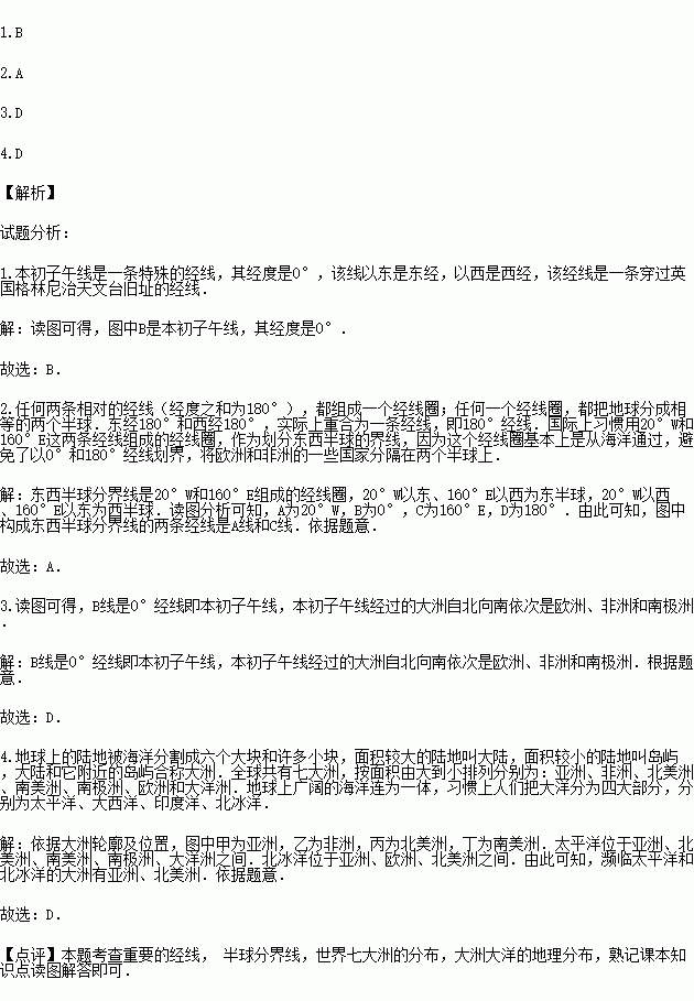 1.图中又称本初子午线的是( )
