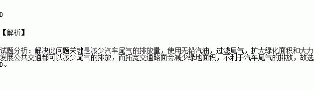 A.用无铅汽油,且过滤尾气 B.扩大绿化面积