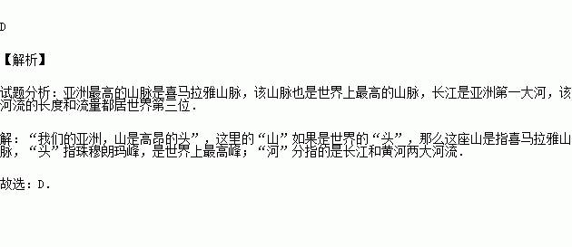 《亚洲雄风》这首歌中“我们亚洲,山是高昂的头;我们亚洲,河像热血流…”的“山”和“河”分别是指( )