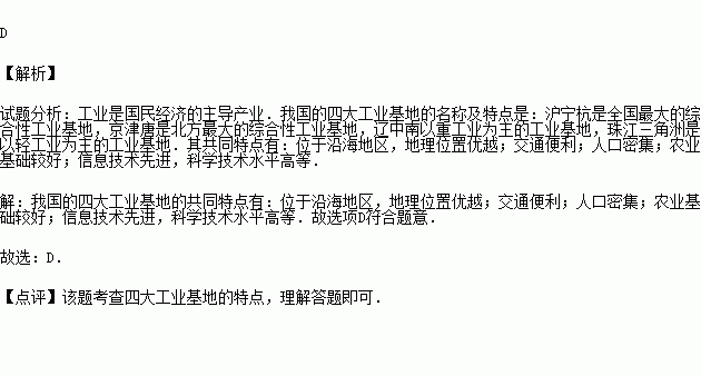 以下叙述属于我国四大工业基地发展工业共同的有利条件是( )