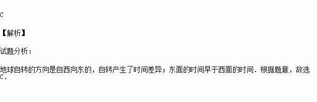A.地球自西向东公转 B.我国东西跨经度广