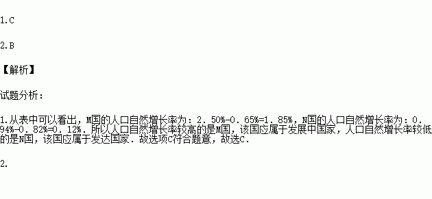 ①人口自然增长率较高的是M国 ②人口自然增长率较高的是N国
