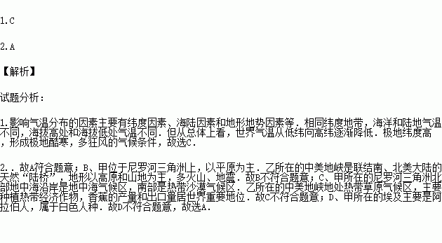 1.图中北极地区终年严寒的主要原因是