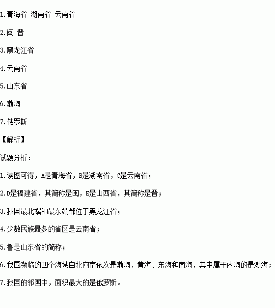 1.图中省份的全称:A____________,B____________,C_____________