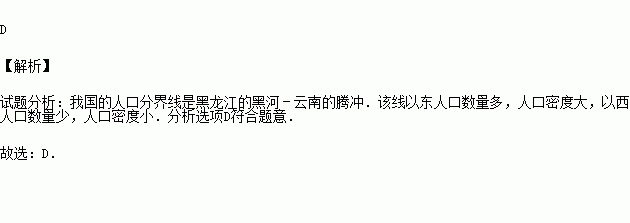 D.黑河﹣﹣﹣腾冲一线是重要的人口地理分界线