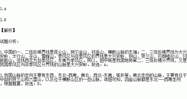 1.图中既是我国地势第二、三级阶梯分界线,又是我国季风区与非季风区分界线的山脉是( )