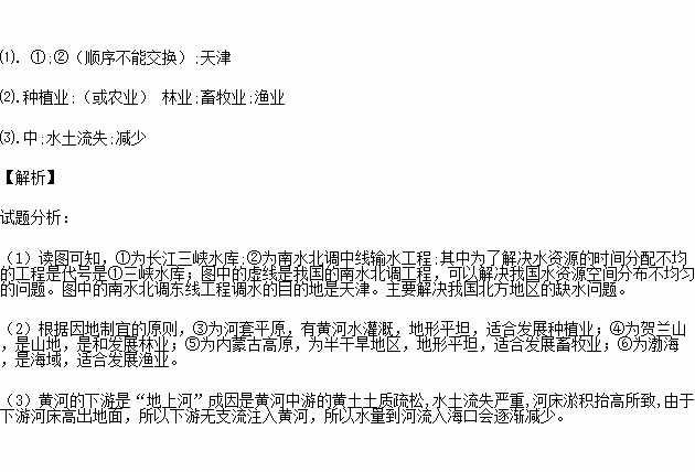 ¢Å.ÔÚͼÖеÄÁ½¸ö¹¤³Ì:¢ÙΪ³¤½ÈýϿˮ¿â;¢ÚΪÄÏË®±±µ÷ÖÐÏßÊäË®¹¤³Ì;ÆäÖÐΪÁ˽â¾öË®×ÊÔ´µÄʱ¼ä·ÖÅä²»¾ùµÄ¹¤³ÌÊÇ´úºÅÊÇ ÎªÁ˽â¾öÖйúË®×ÊÔ´µÄ¿Õ¼ä·ÖÅä²»¾ùµÄ¹¤³Ì´úºÅÊÇ Í¼ÖеÄÄÏË®±±µ÷¶«Ïß¹¤³Ìµ÷Ë®µÄÄ¿µÄµØÊÇ