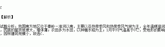 C.1月平均气温高于0℃ D.园林建筑规模庞大,气势宏伟