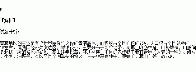 C.雪域牧场,牦牛成群 D.城镇遍布,繁华热闹
