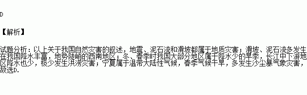 D.春季宁夏气候干旱,多发生沙尘暴气象灾害