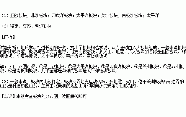 图为六大板块图,读图回答下列问题