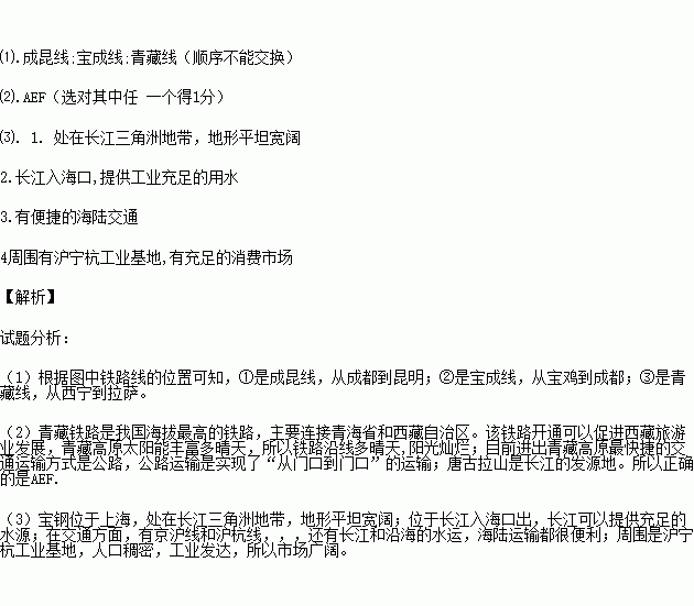 ⑶.根据材料:请从地形、水源、交通、消费市场四方面简要说明形成宝钢钢铁工业有利的条件