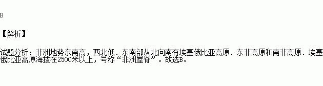 (2)非洲大陆地势由 向 倾斜,平原分布在 地区,非洲海岸线平直, , 和半岛很少。