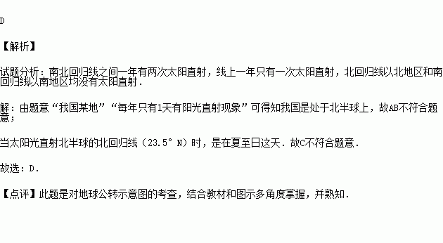 C.23.5°N﹣冬至日 D.23.5°N﹣夏至日