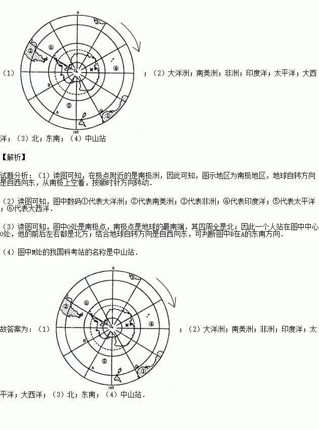 (1)图中所示是北极地区还是南极地区?请在图上标出地球自转方向.