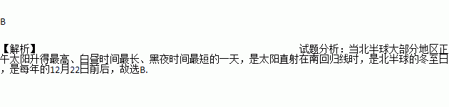 当北半球大部分地区正午太阳升得最高,白昼时间最长,黑夜时间最短的一天( )