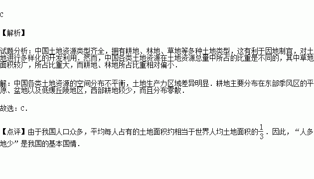 从图中可以看出,我国土地资源的现状是 少,难以利用的土地较多,后备土地资源 .(充足或不足),所以,我国把“十分珍惜、合理利用土地和 ”作为一项基本国策.