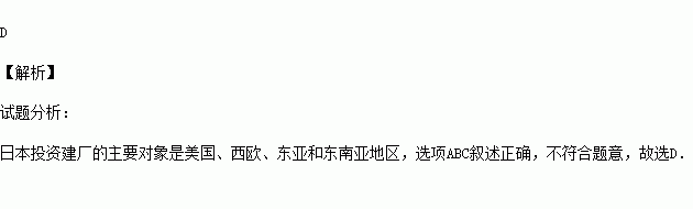 D.建立了许多海外生产与销售基地,投资建厂的主要对象是非洲、南美洲