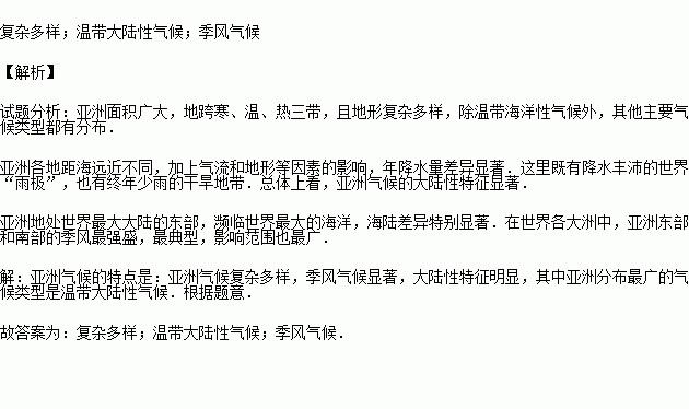 A.亚洲降水多 B.亚洲面积大