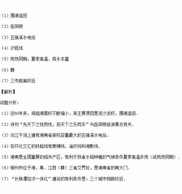 (5)湖南是全国重要的稻米产区,有利于我省水稻种植的气候条件是 。
