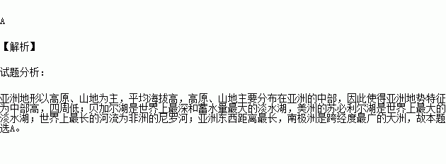 A.地势起伏最大的大洲,中部高,四周低