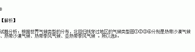 关于图①②③④四地的气候类型,按顺序正确的是( )