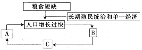撒哈拉以南的非洲的许多国家已在不同程度上意识到发展的危机,并为此作出努力。但更多的撒哈拉以南的非洲国家积重难返,贫困像恶魔一样笼罩着他们的生活。其中人口增长是其贫困的一个重要原因。下面是贫困恶性循环示意图,将下列序号填入图中适当位置: