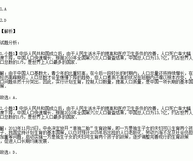 2014年李克强总理政府工作报告特别指出:“坚持计划生育基本国策不动摇,落实一方是独生子女的夫妇可生育两个孩子的政策.”据此回答问题.