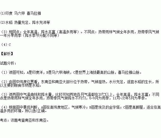 (4)以下三幅景观中在东南亚可见的是 图(填字母)。