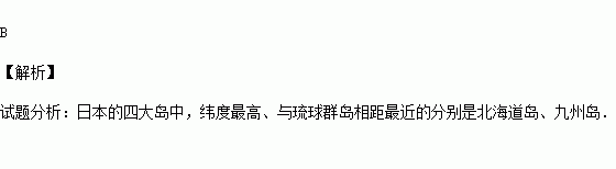 日本的四大岛中,纬度最高、与琉球群岛相距最近的分别是( )