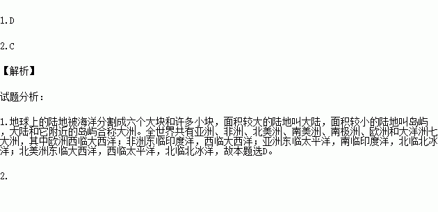 C.欧洲、亚洲、北美洲 D.非洲、南极洲、大洋洲
