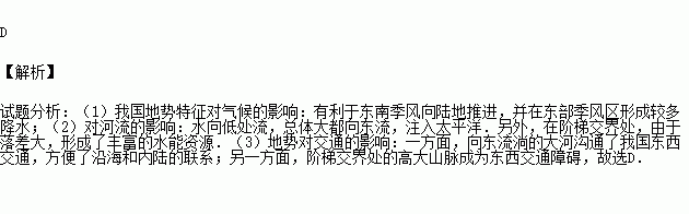 我国地势西高东低,对气候、河流、交通等影响很大,下列说法与之不符的是