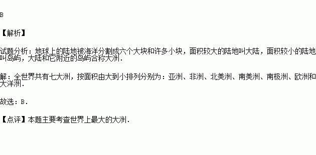 D.亚洲、印度洋、大西洋、北美洲、太平洋、非洲