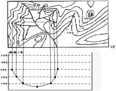 解答 解:读图可知,(1)等高线地形剖面图的画法是把等高线上的海拔高度与数轴中的海拔对应起来,把交点连接成线,即为地形剖面图.
