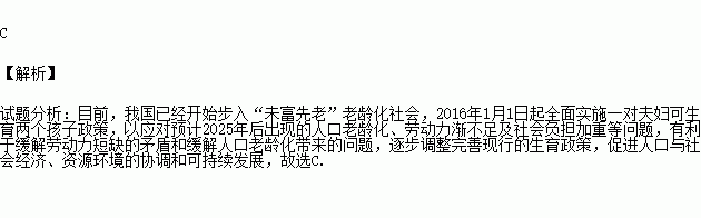 实施全面二孩政策,是继单独二孩政策之后生育政策的进一步调整完善.下列社会背景发展,哪一项是促使国家调整二孩政策的原因( )