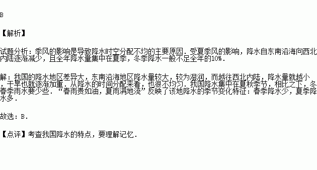 关于我国降水量分布总均势的描述,最准确的一项是( )