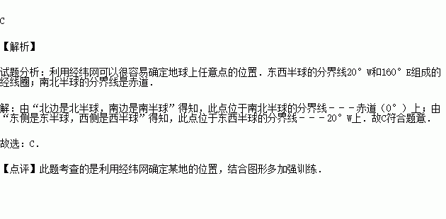 李红的爸爸是一名海员,一天她打电话问她爸爸出差到了什么地方,她爸爸神秘地告诉李红说:“我现在的位置北边是北半球,南边是南半球,东侧是东半球,西侧是西半球.”请你说出李红爸爸正确的位置( )